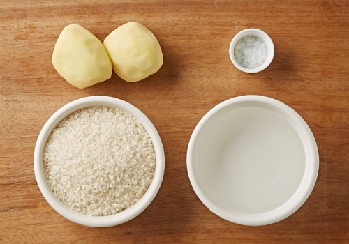 - 밥솥에 불린 쌀과 감자를 넣고 물의 양을 조절한 후 취사 버튼을 누릅니다.