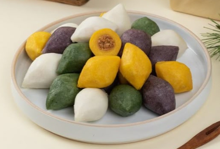 - 찹쌀가루를 반죽하여 적절한 형태로 빚는다.