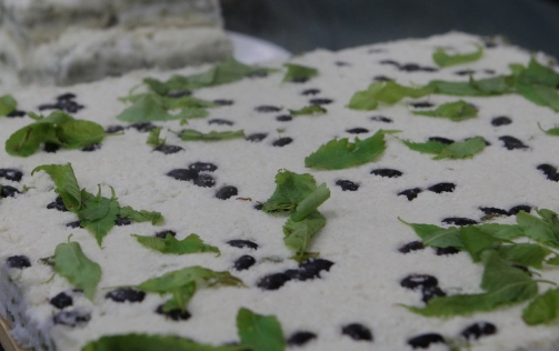- 완성된 느티떡을 식혀 적당한 크기로 잘라낸다.