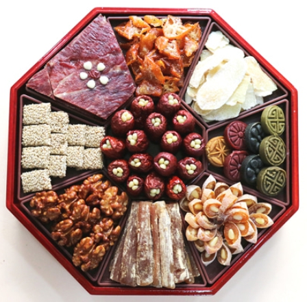 - 마지막으로 밤과 대추를 얹어 아름답게 장식합니다. 대추는 얇게 썰어 올리거나 통째로 사용하며, 밤은 먹기 좋은 크기로 썰어 배치합니다.