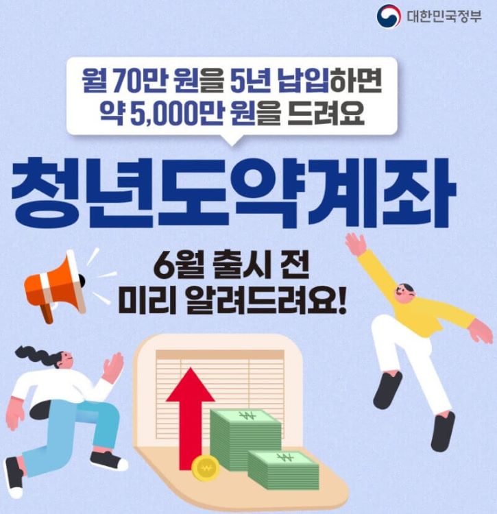 안녕하세요, 여러분. 오늘은 2023년 6월부터 출시될 예정인 청년도약계좌에 대해 알아보려고 합니다. 청년도약계좌는 정부에서 지원하는 정책형 금융상품으로, 청년들의 중장기 자산형성을 돕기 위해 만들어진 상품입니다. 매월 70만 원 한도 내에서 자유롭게 납입할 수 있으며, 정부가 최대 6%의 기여금을 지급하고, 이자소득은 비과세 혜택이 적용됩니다. 만기는 5년이며, 가입 후 3년은 고정금리가 적용되고, 이후 2년은 변동금리가 적용됩니다. 예금형, 채권형, 주식형 중에서 선택할 수 있습니다.